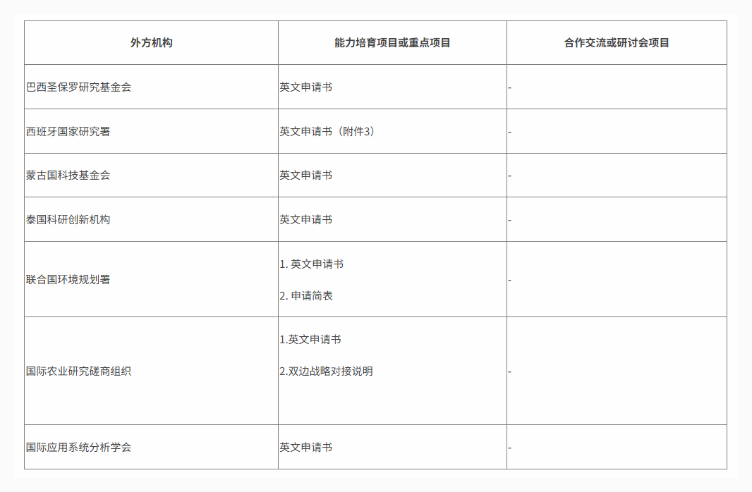 具体填报要求详见与各资助机构及国际组织的合作项目说明。